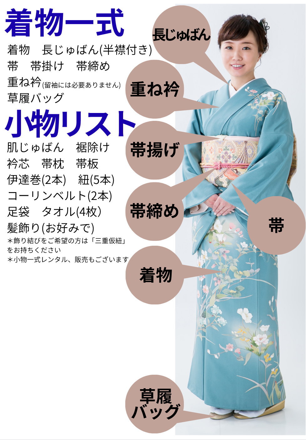お持込みのお着付の際に必要なアイテムとなります。