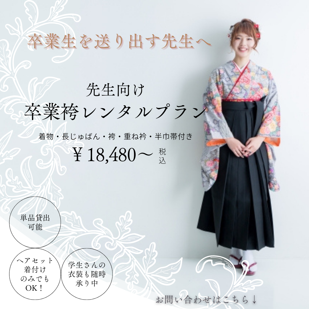 長野県諏訪市のベルアンジュでは、卒業式に出席される先生・教員の方向け袴レンタルプランをご用意しております。